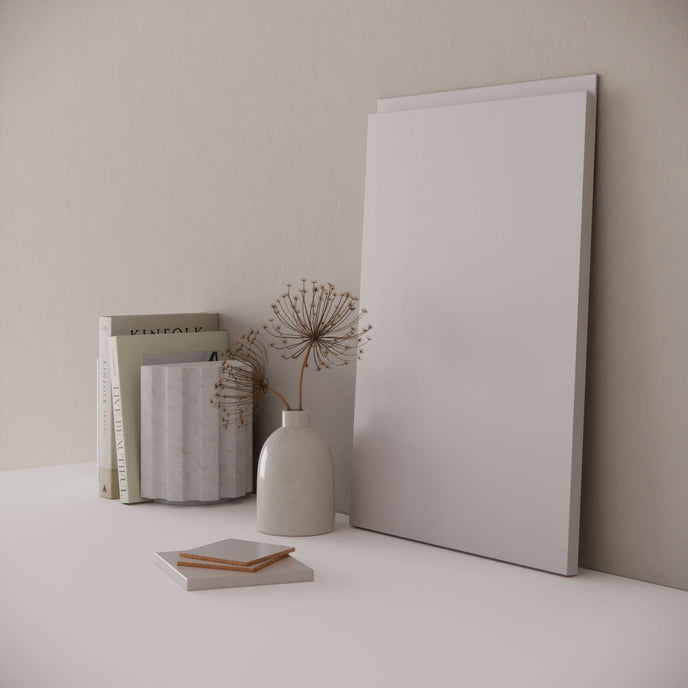 Panou mdf acoperit cu 2 până la 3 straturi de lac mat, cu spatele melaminat alb mat.