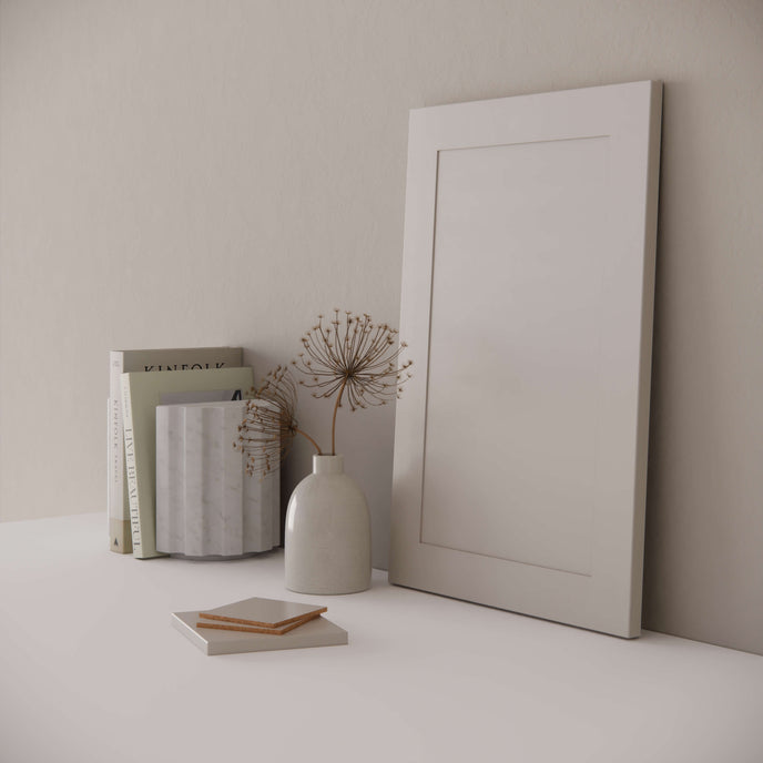 Panou mdf acoperit cu 2 până la 3 straturi de lac mat, cu spatele melaminat alb mat.