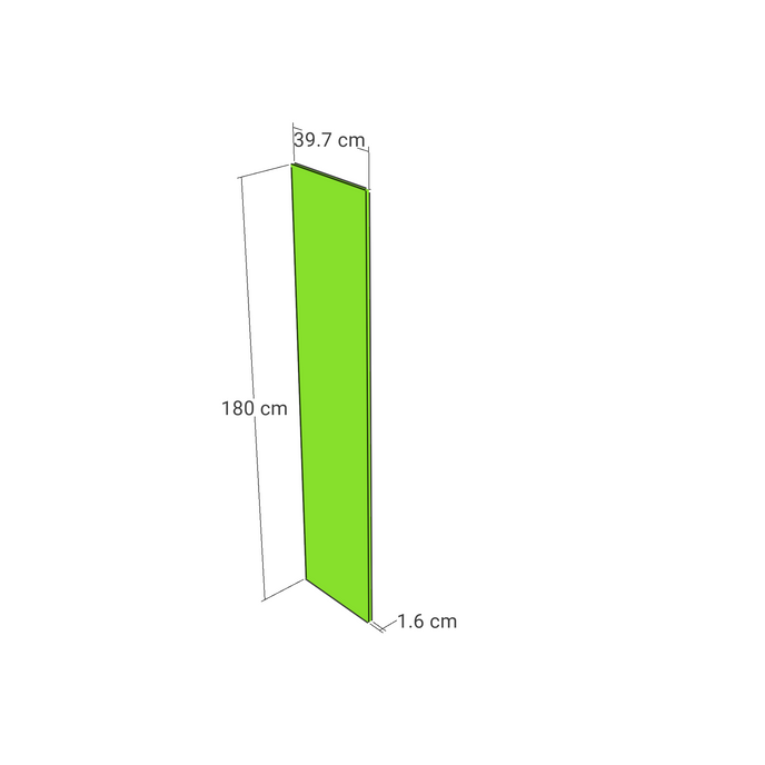 Lățime: 39 cm. Înălțime: 180 cm. Grosime: 1,6 cm.