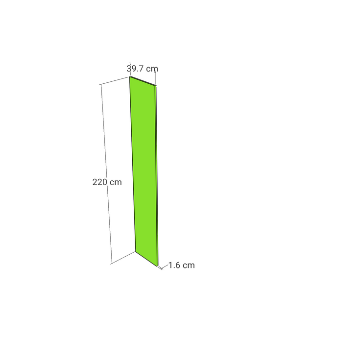 Lățime: 39 cm. Înălțime: 220 cm. Grosime: 1,6 cm.