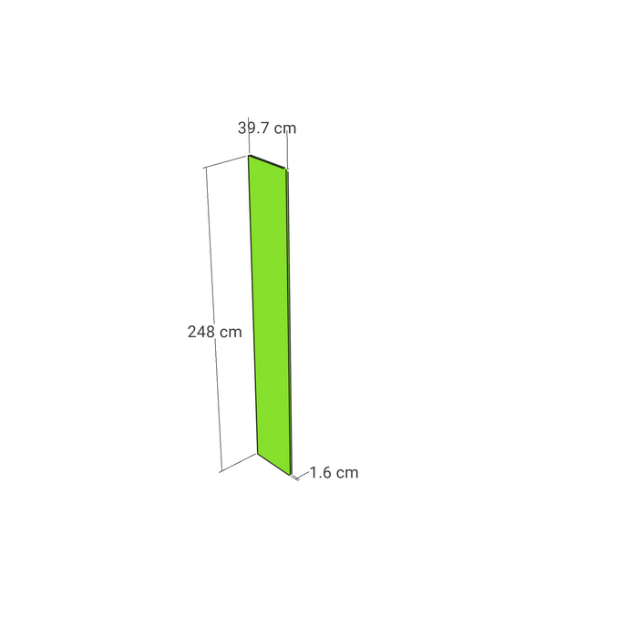 Lățime: 39 cm. Înălțime: 248 cm. Grosime: 1,6 cm.